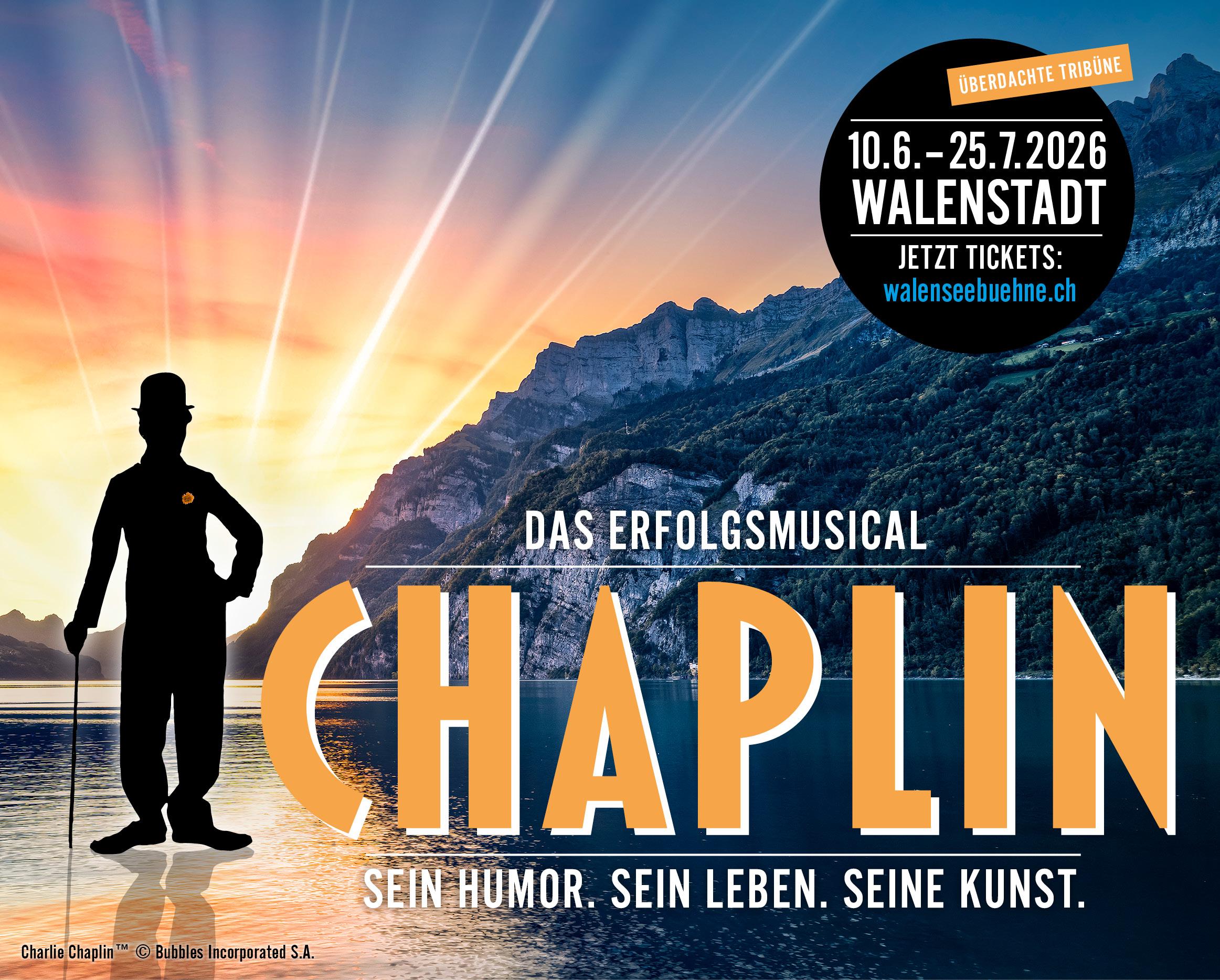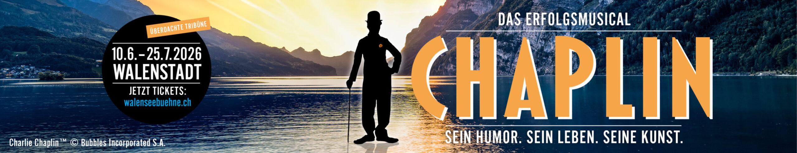 CHAPLIN – DAS MUSICAL bringt diese universellen Botschaften der Liebe in einer berührenden und mitreissenden Musicalfassung auf die Walensee-Bühne.