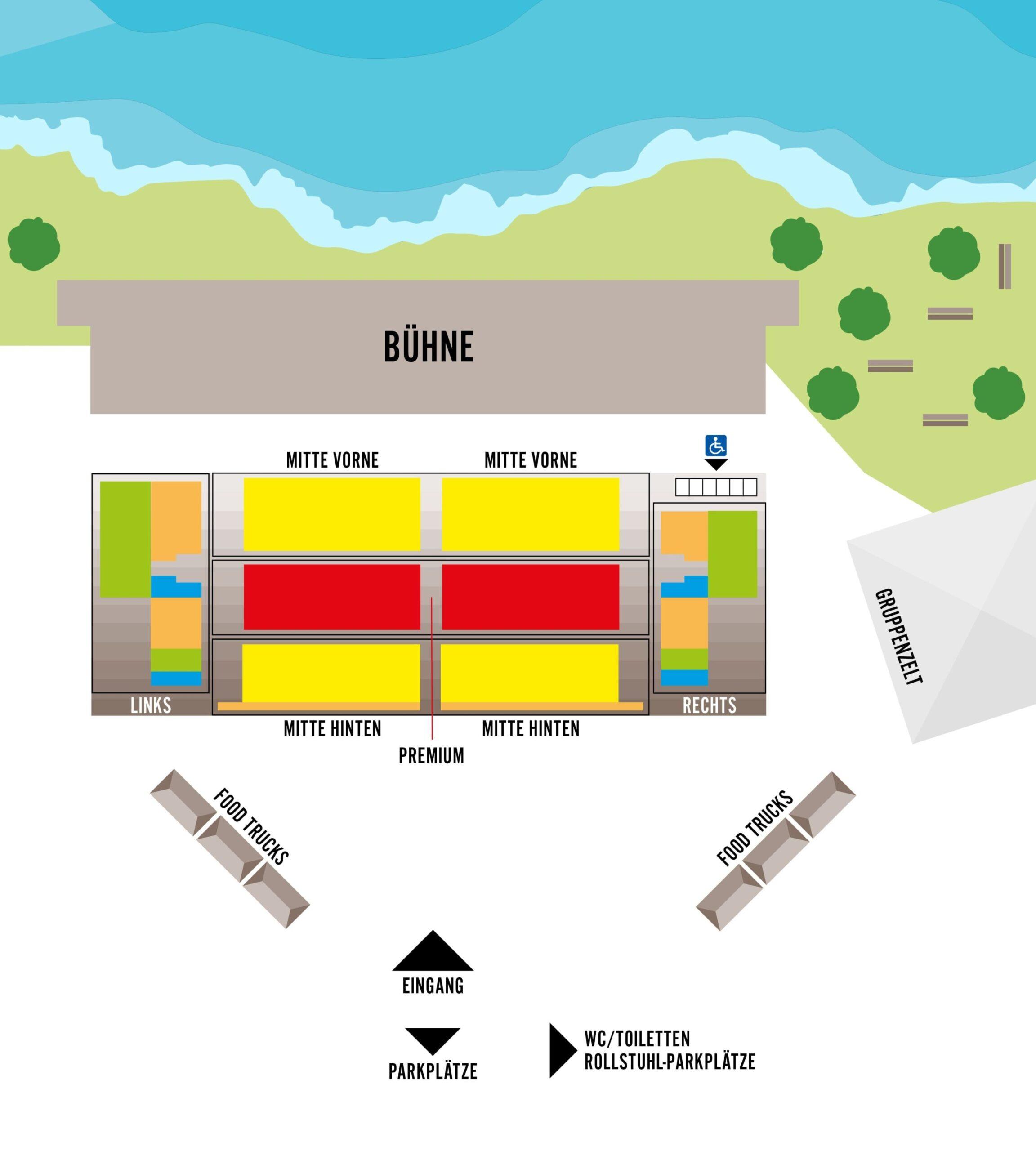 Beste Sitzplatz-Kategorie mit Sitzkissen, ein Glace, ein Glas Prosecco oder Getränk nach Wahl, Gratis-Parkplatz (keine Reservierung im Vorfeld nötig).